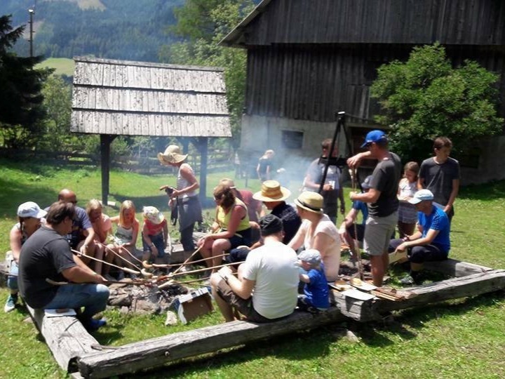 Eines unserer absoluten Programm-Highlights ist die gemeinsame Fahrt auf unsere Alm in St.Oswald. Dort befindet sich unser Almhaus "Dolzer", das vor ca. 400 Jahren erbaut wurde und im Sommer als Ferienquartier für die Rinder des Bauernhofes in Döbriach diente. Daneben befindet sich die alte Flodermühle (Flodern sind turbinenartige Mühlräder, die unsere Vorfahren bereits seit Jahrhunderten und lange vor Erfindung der Turbine verwendeten, um die Wasserkraft im Gebirge besser nutzen zu können). Nach einer kleinen Wanderung ins Gebiet des Nationalparks Nockberge gelangen wir zum "Dolzer", wo wir Ihnen die interessante "Rauchkuchel" zeigen und vom Leben auf der Alm erzählen. Anschließend werden vor dem Haus am Lagerfeuer Würstel gegrillt...