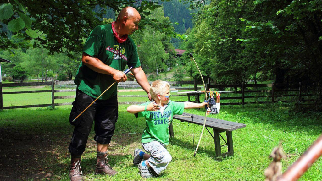 With air conditioning, full bathroom with shower and toilet, electrical connection with sockets, camping table, 6 armchairs and 1 parasol, kitchen with stove (gas or electricity), living area, cooking and eating utensils, with refrigerator, shady, covered terrace, child safety on the loft bed